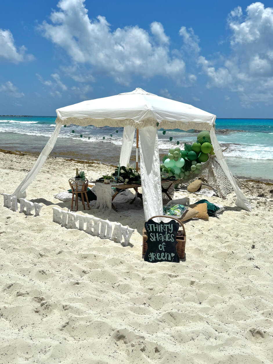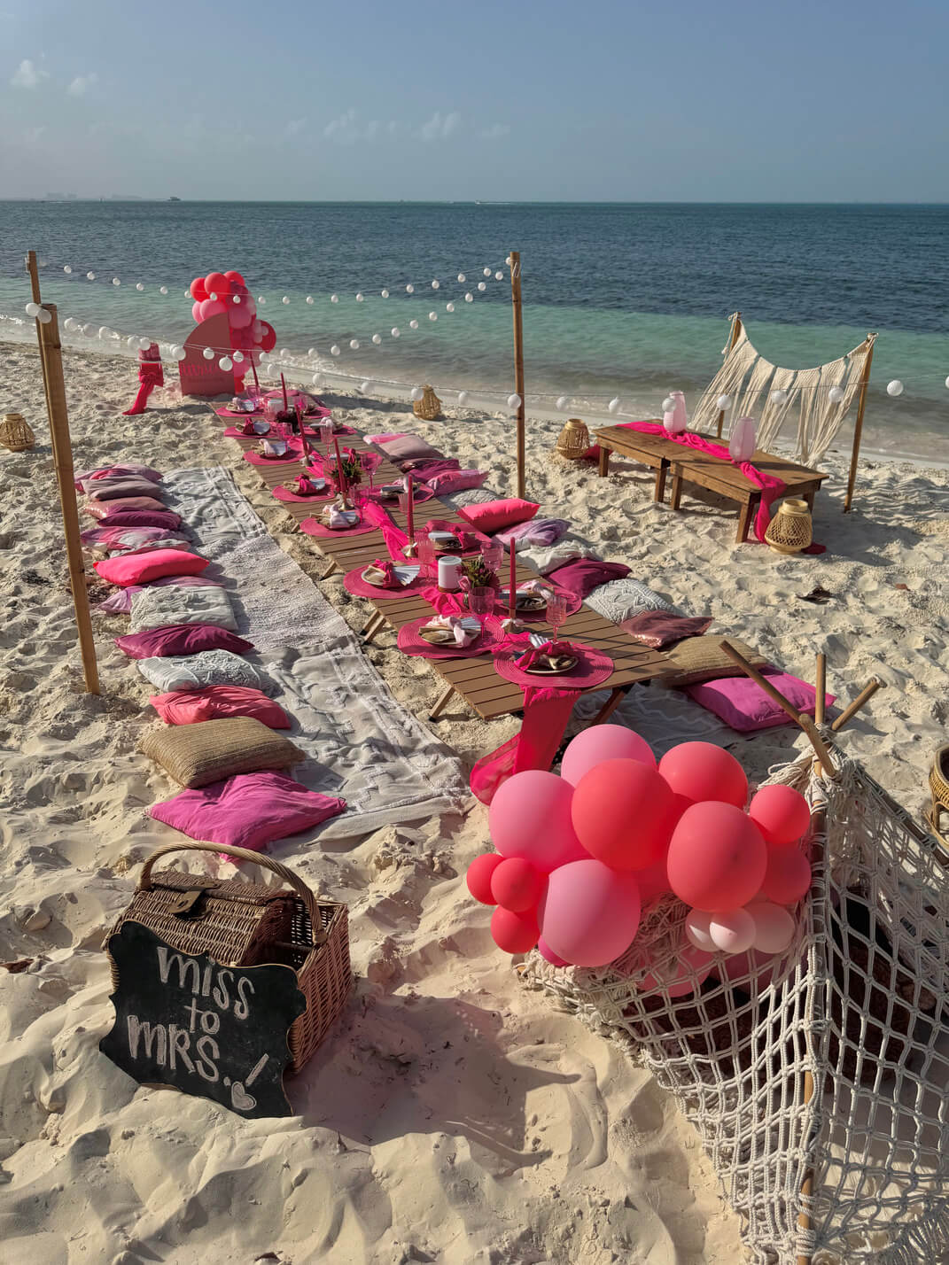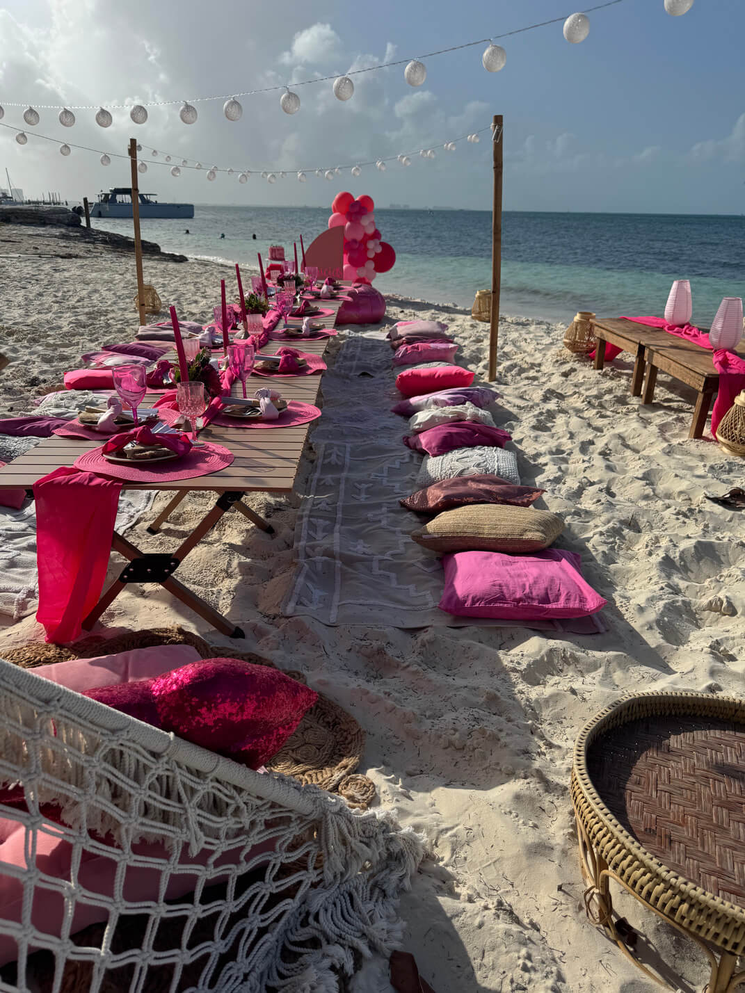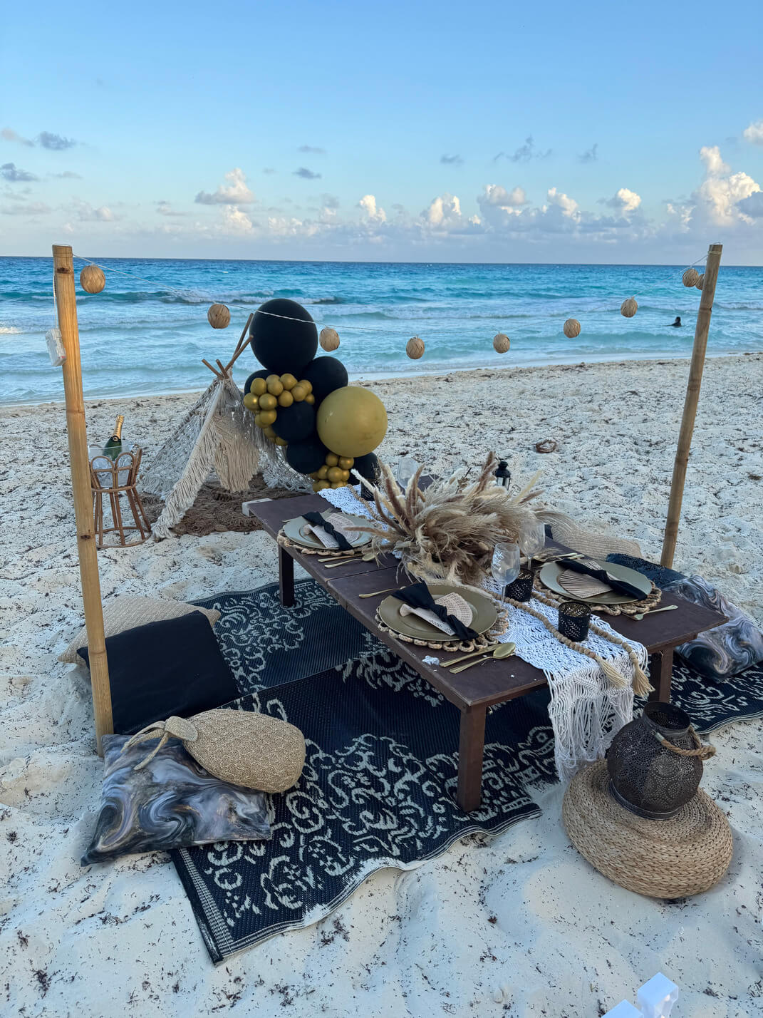 Picnics can be hosted at your Airbnb/Villa or our beach location. Just choose a theme and color combination for your special event and we got you covered.